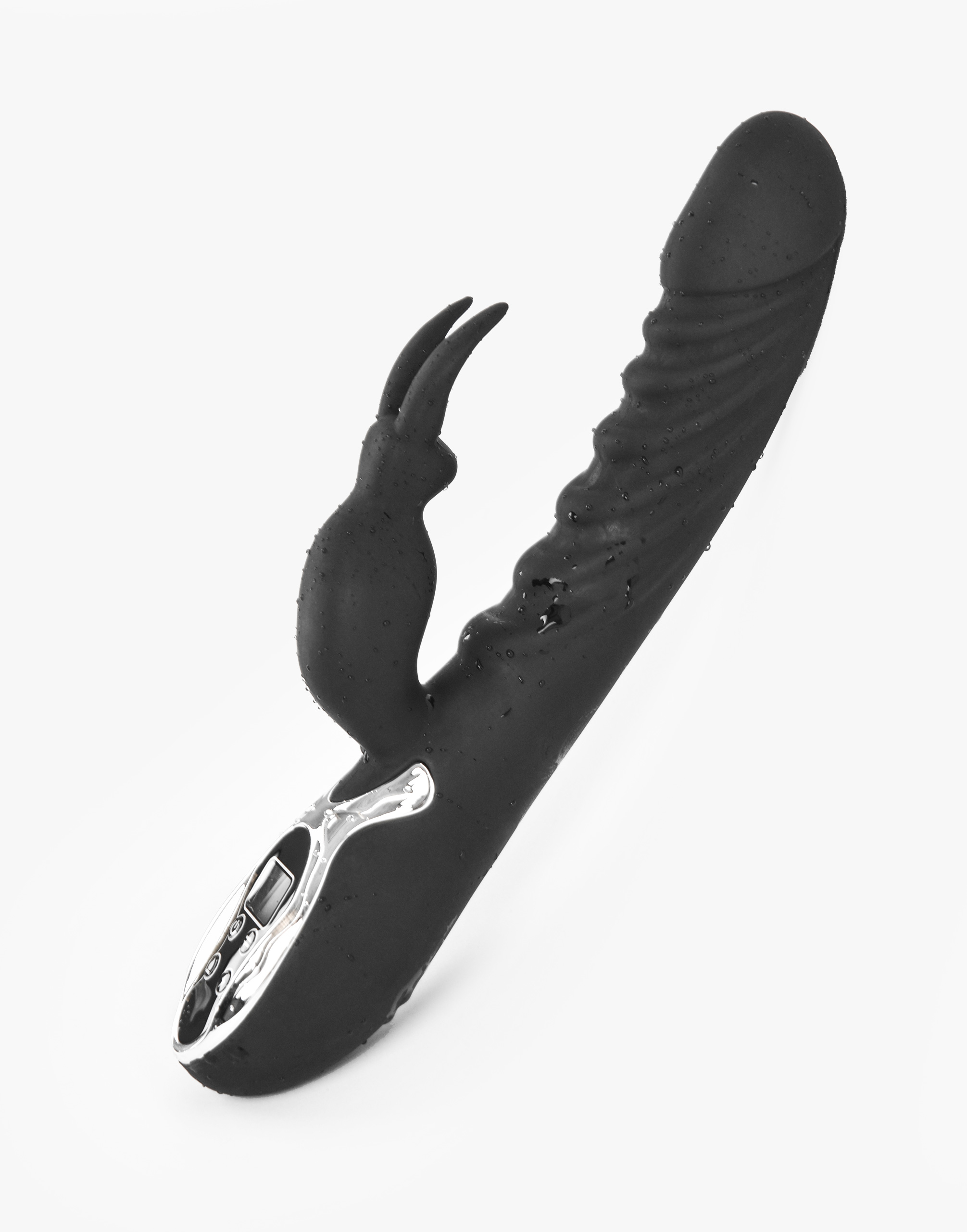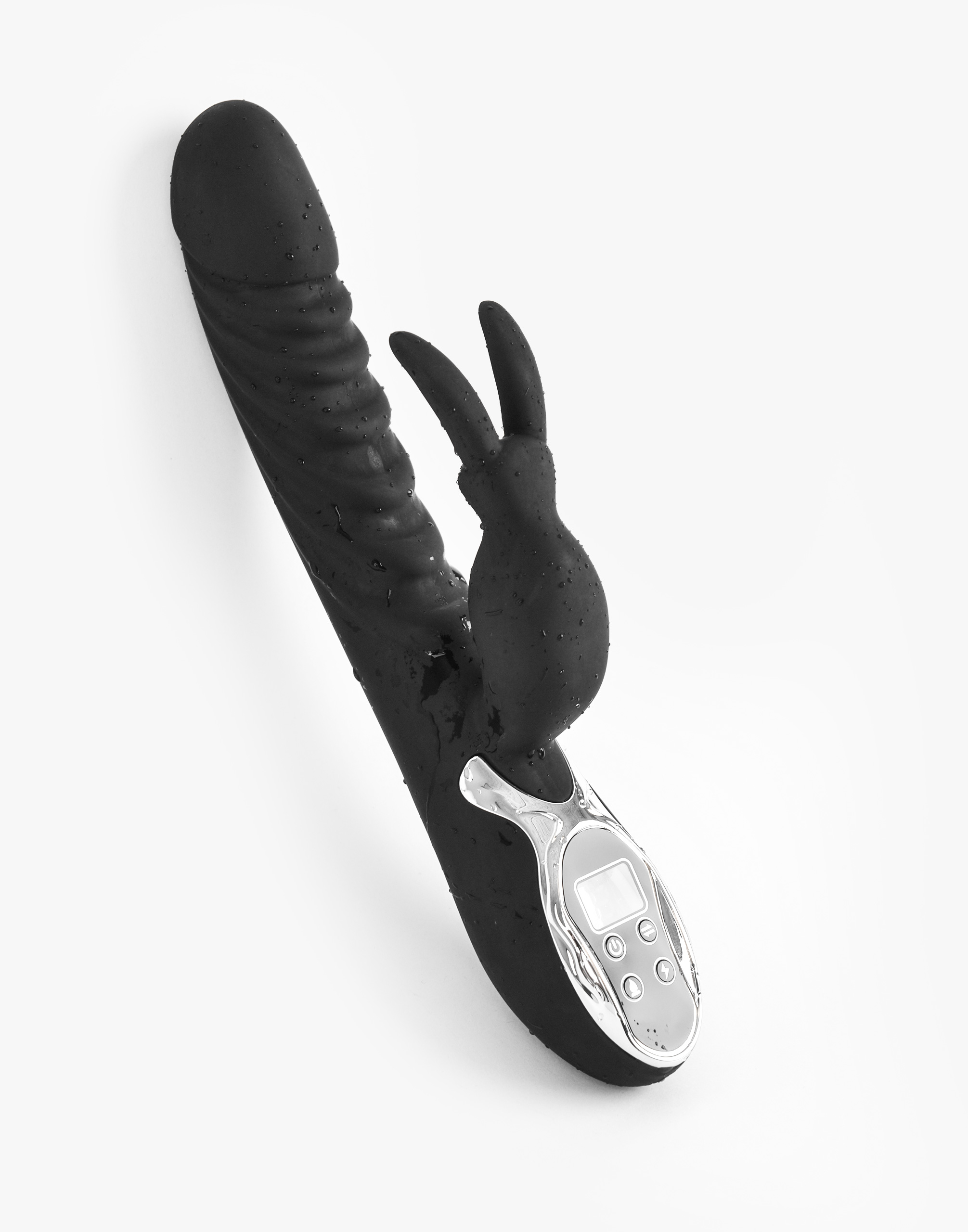 Skaftet i Blackie Rabbit Vibratoren har en stimulerende varmeeffekt, der kan varme op til 45 gr. for en mere naturtro oplevelse i dit indre.