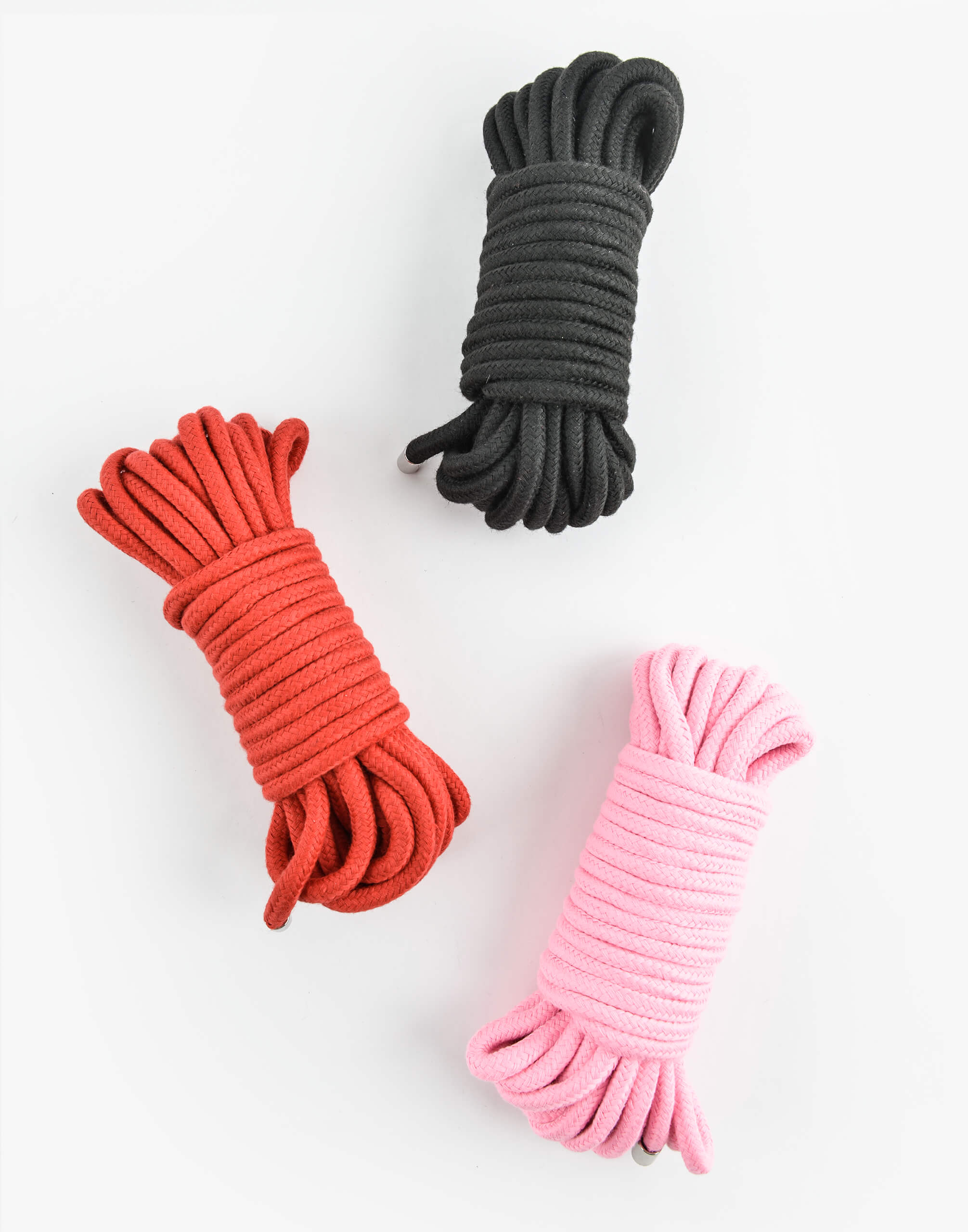 Rebet er lavet i lækkert bomuld og har en metalafslutning i hver ende af rebet, så rebet ikke trevler i enderne og ikke så let glider op.