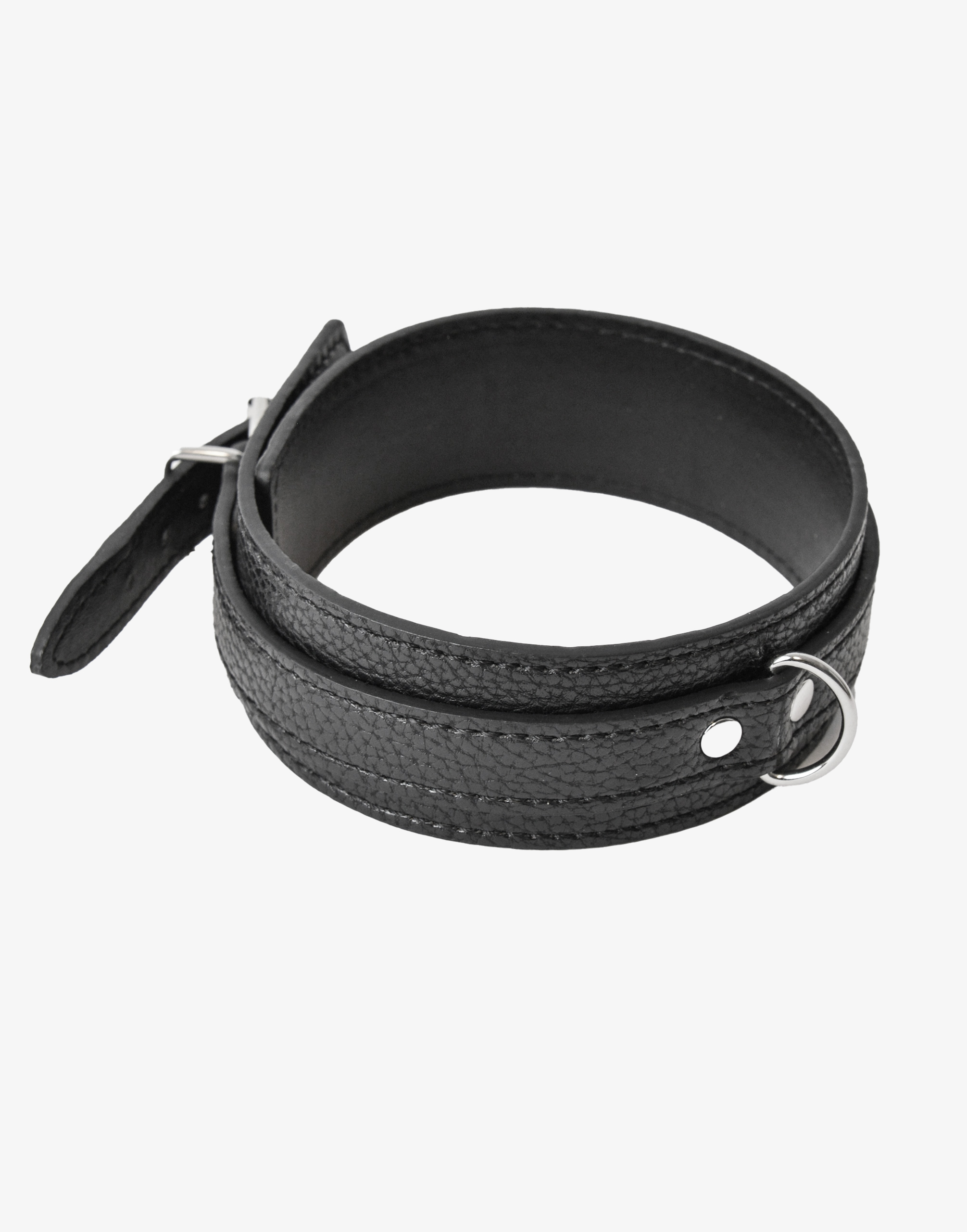 Den justerbare spænde sikrer en perfekt pasform, så halsbåndet sidder behageligt og sikkert om halsen. En solid D-ring giver mulighed for fastgørelse af snore, kæder eller andre bondage-accessories, hvilket gør det til et alsidigt redskab i jeres intime lege. Materialet er både slidstærkt og blødt, så komfort og holdbarhed går hånd i hånd. Kombiner eventuelt med vores håndled og ankel manchetter fra samme serie.