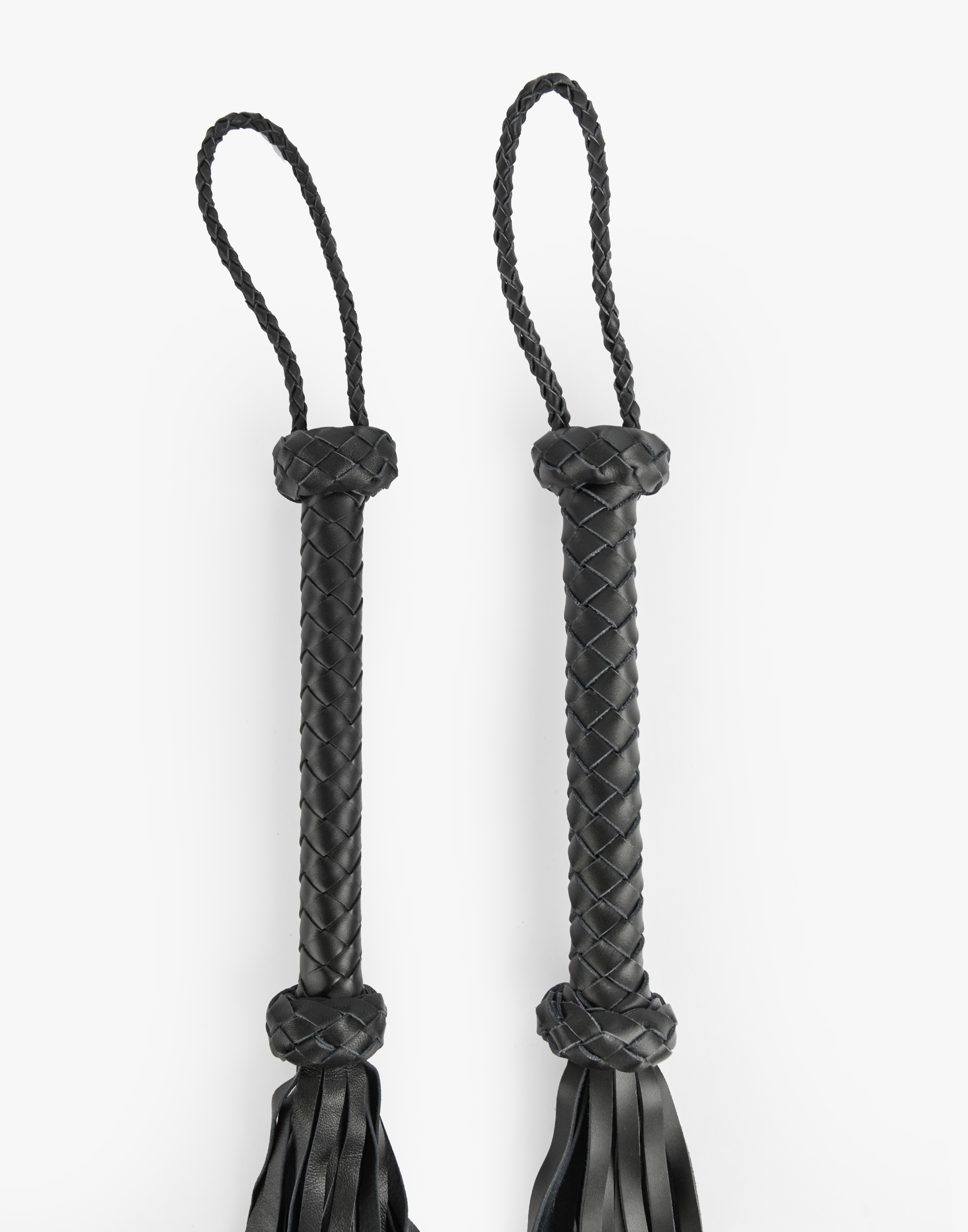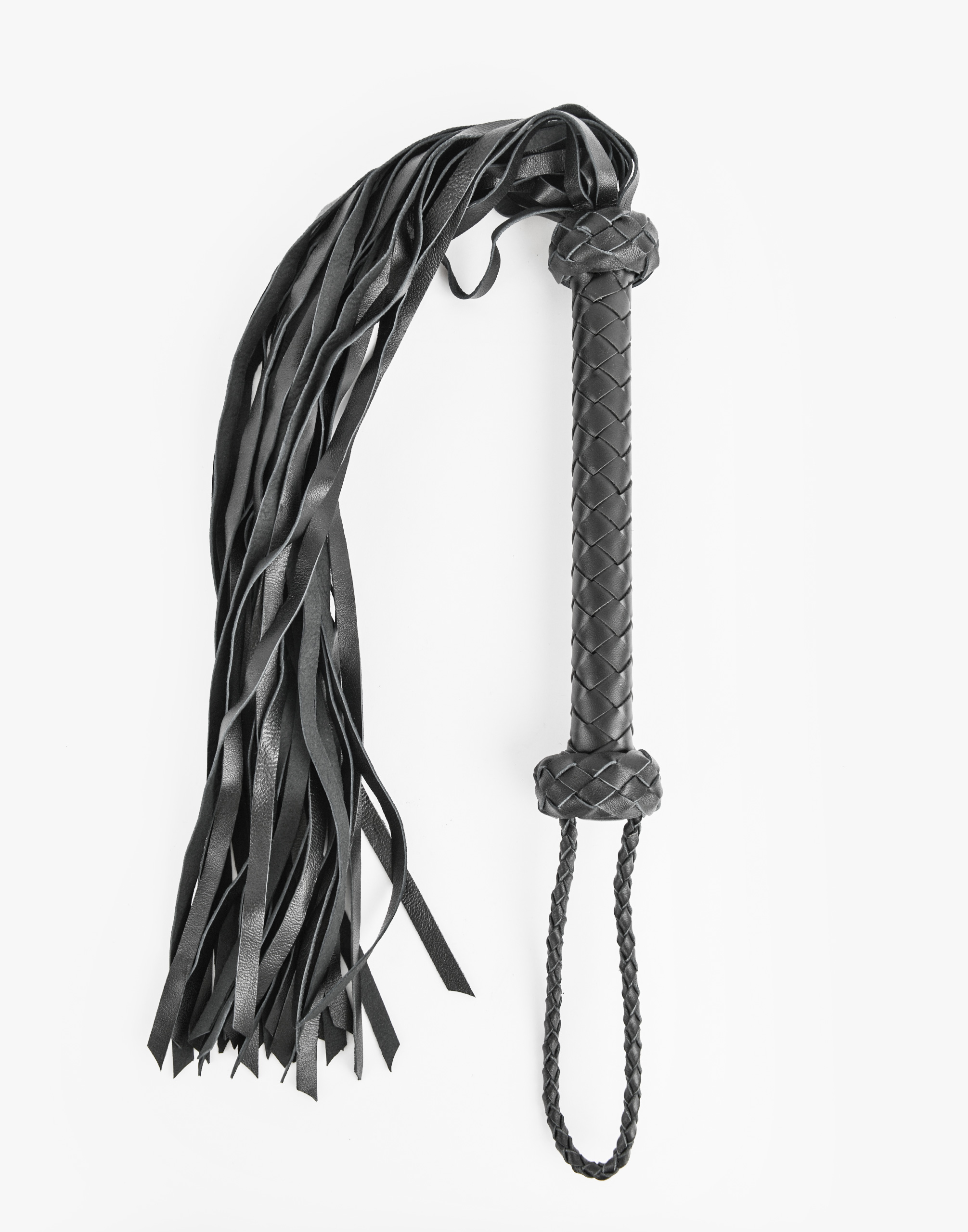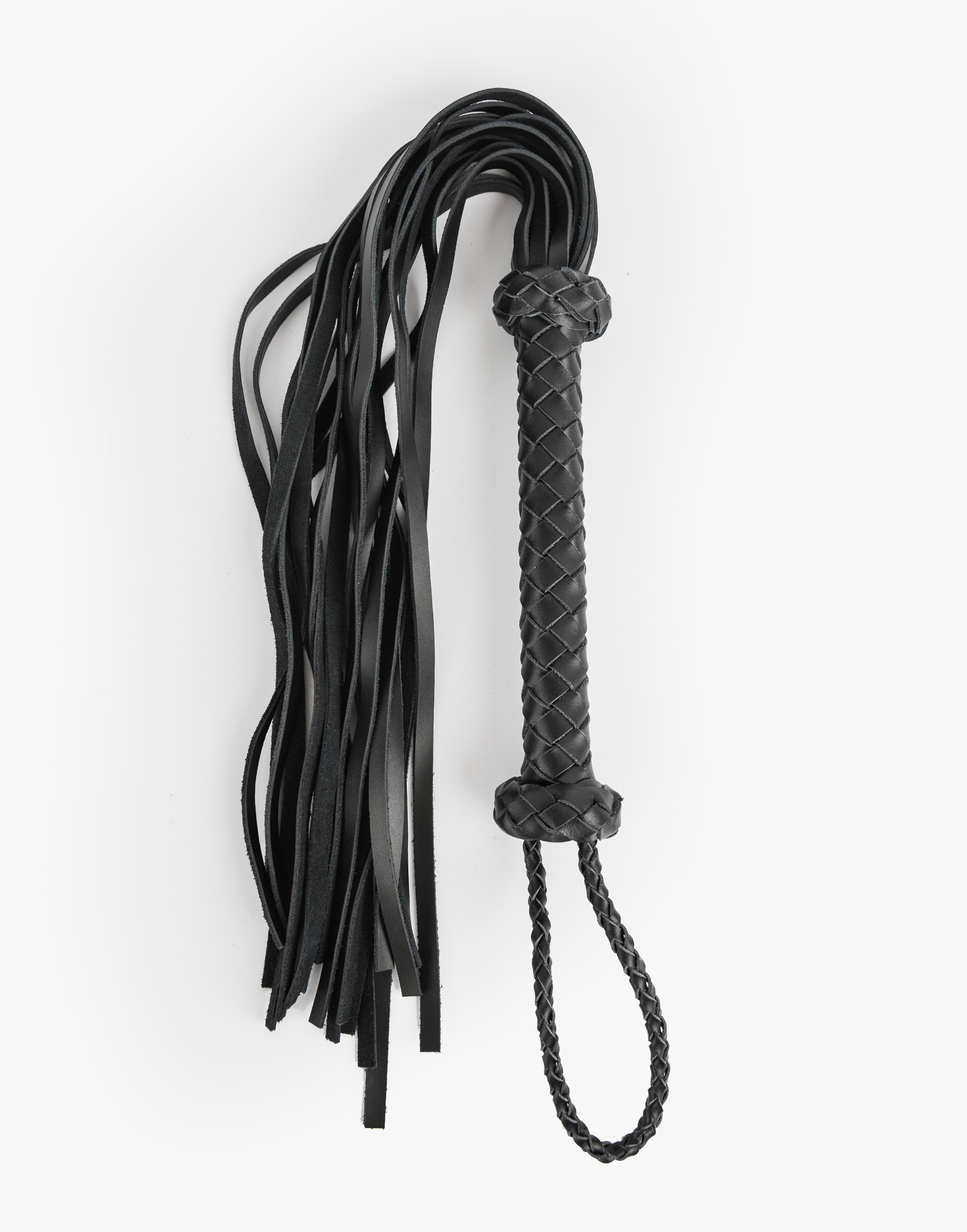 Denne klassiske flogger er håndflettet i ægte læder, der fås i to forskellige tykkelser.