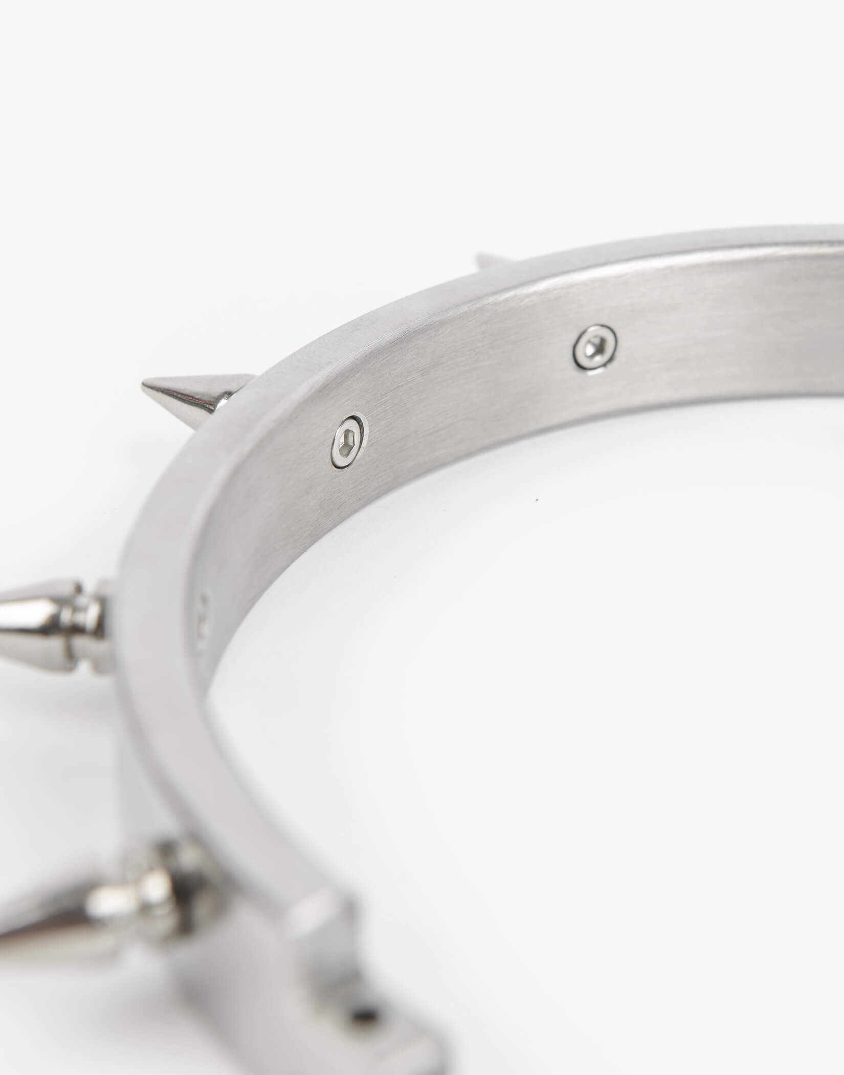 • Kraftigt, tungt og råt stål halsbånd med pigge, der emmer af kvalitet
