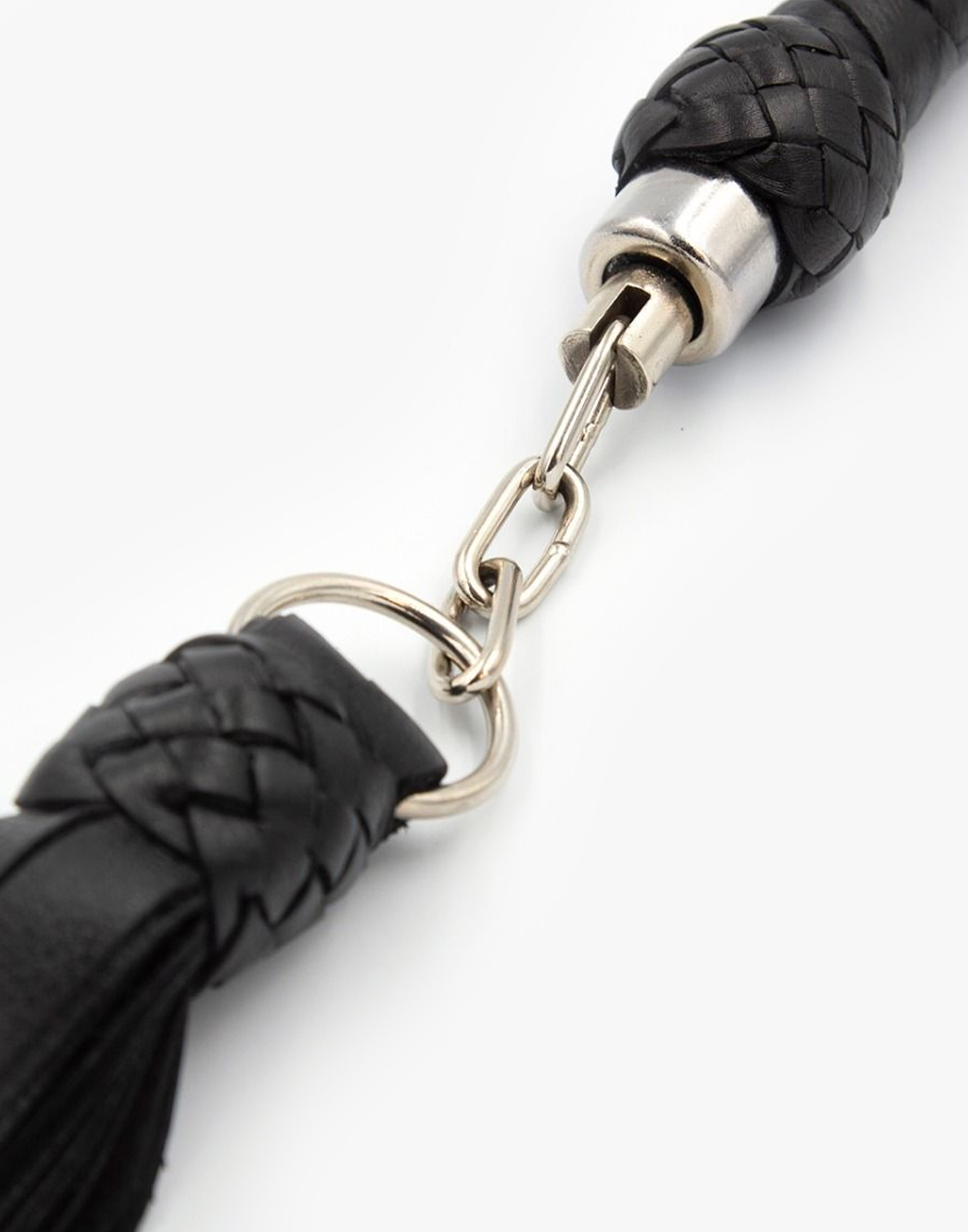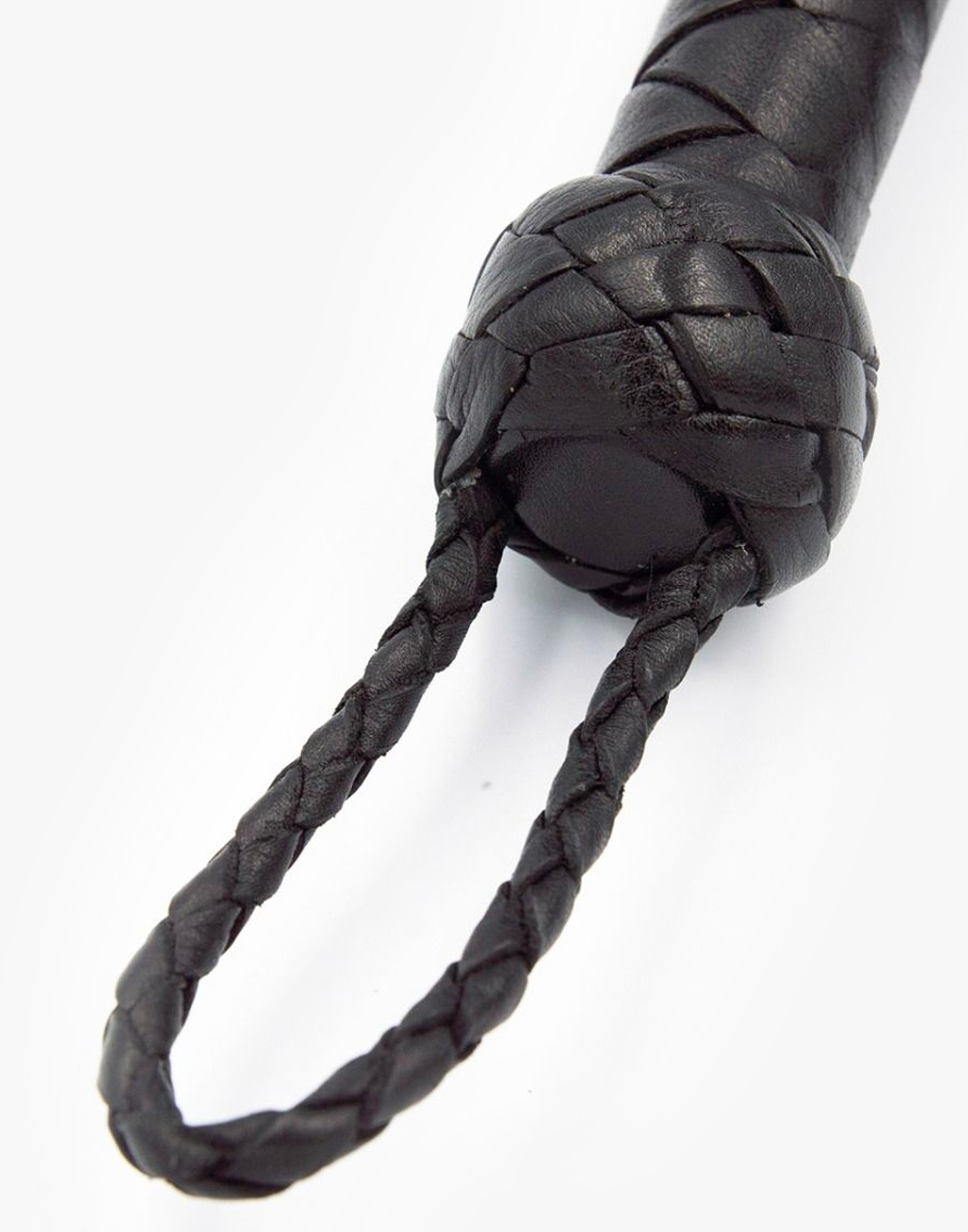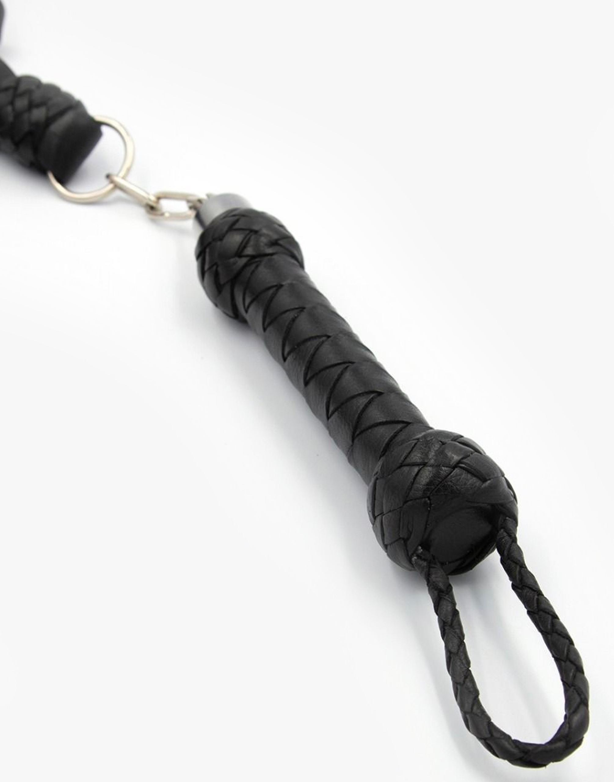 Denne flogger har lædervævet greb med smukke tyrkiske knuder og et kuglelejet drejeled. Drejeledet gør den nem at håndtere og du bliver ikke så træt i arm og håndled, men kan fortsætte i lang tid. Den roterende svirvel for enden af håndtaget gør, at du ikke bliver viklet ind i snerterne.
