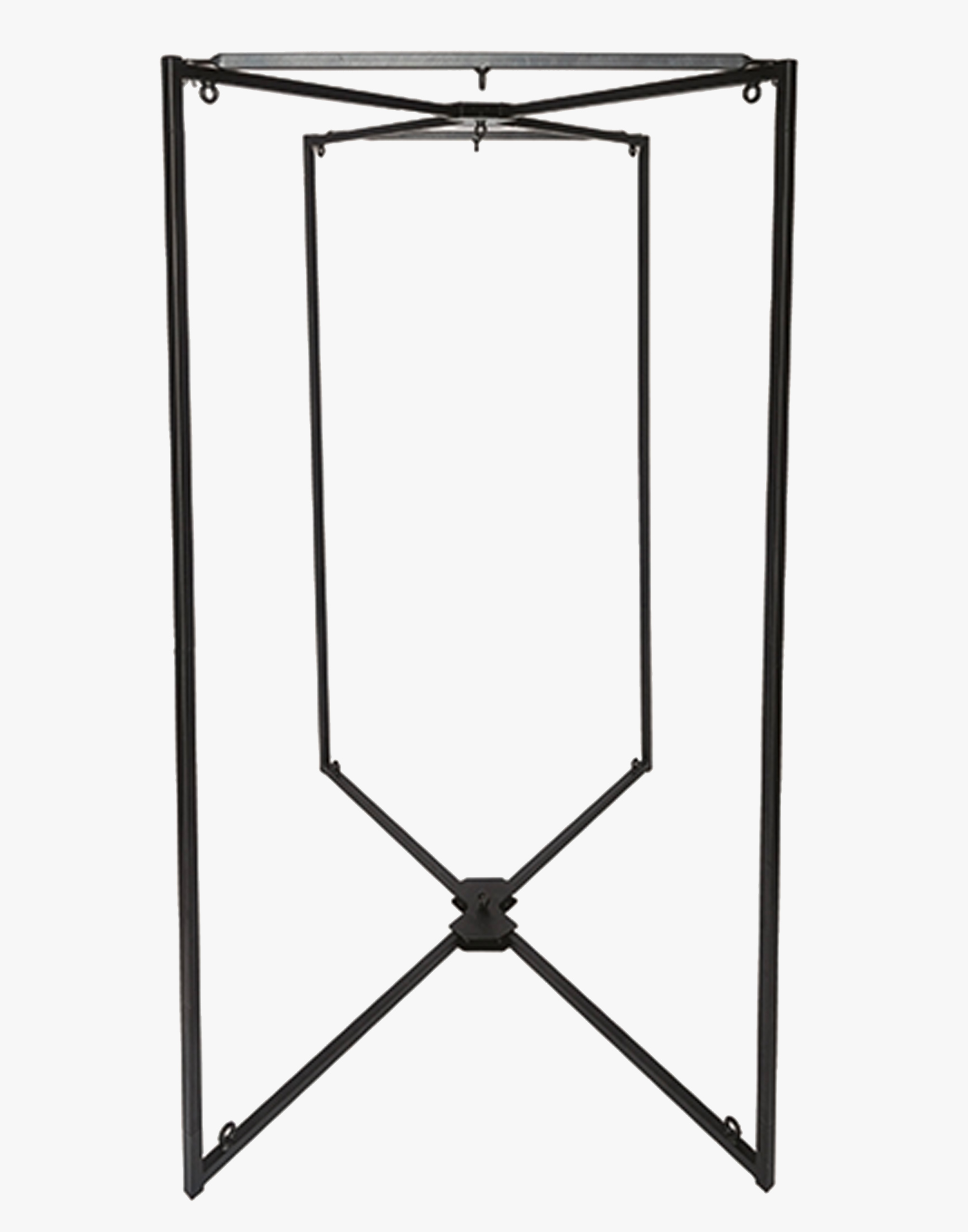 Mister B har udviklet sin egen bærbare og letanvendelige, stabile og robuste BDSM stativ. Dette meget alsidige stativ er fremstillet i Europa af højkvalitetsstål og er designet til ikke blot en 4-punkts, men også en 5-punkts slyngemåtte.