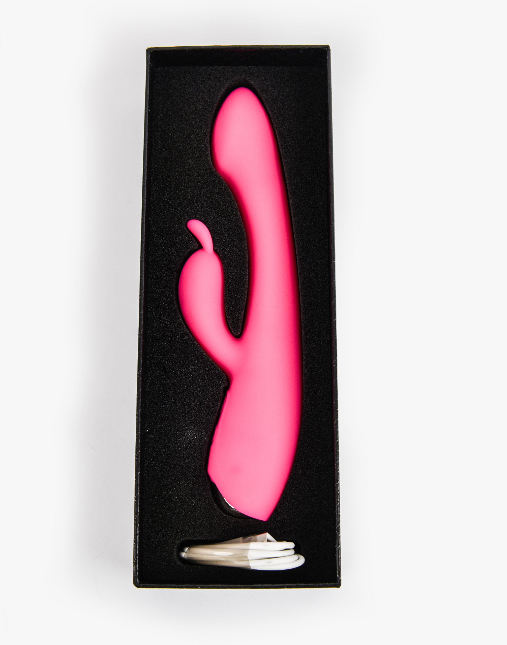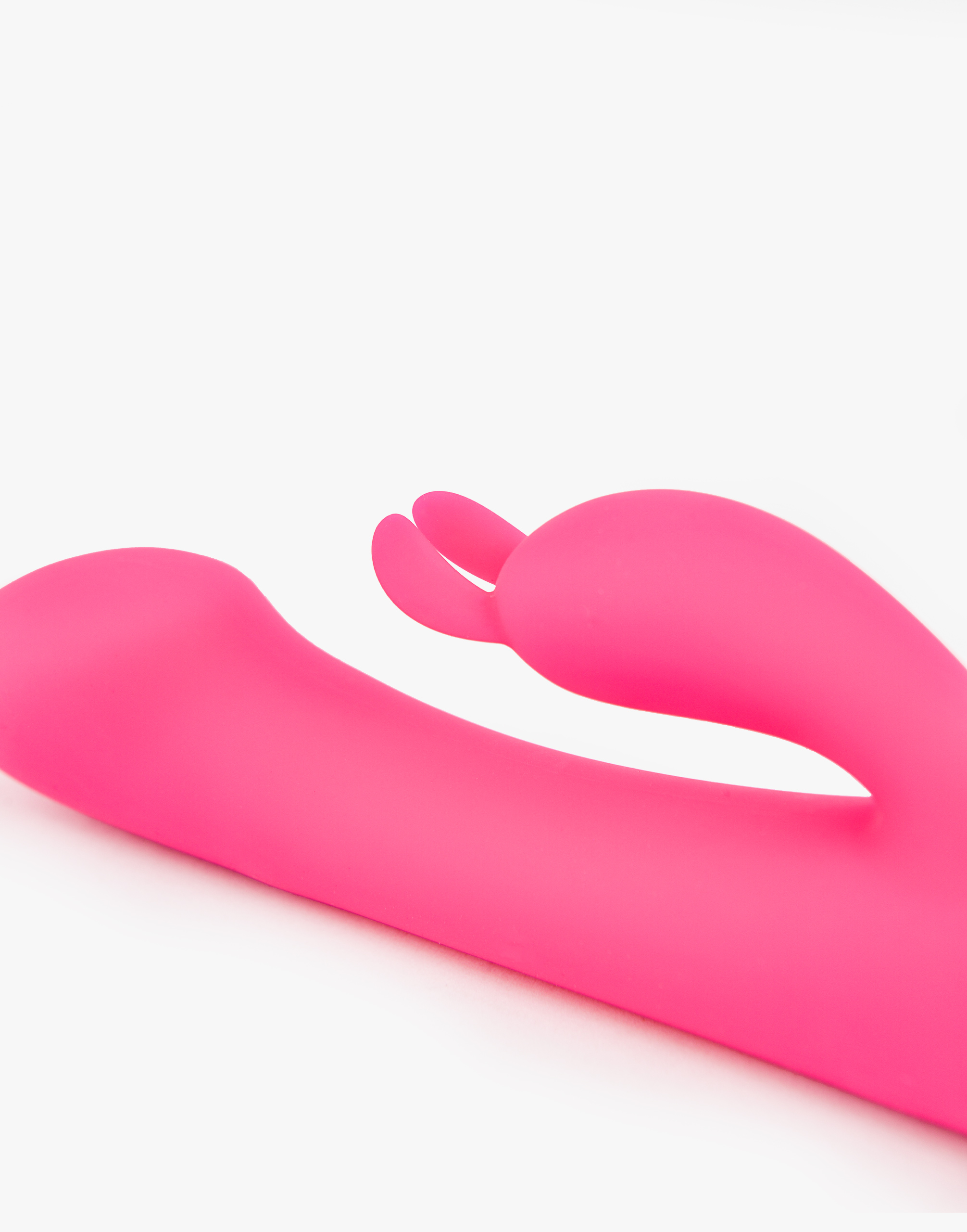 Den silkebløde overflade er lavet i kropssikker, medicinsk silikone og vibratoren er let betjent med sine to knapper, når du vil nyde nogle af de 9×9 vibrationsmønstre, der styres af de to motorer under overfladen.  Du kan både stimulere dit indre med vibrationer i skaftet eller kombinere stimulationen med den store, bløde og faste kanin der stimulerer klitoris fortil. Det er din onani session og du bestemmer!