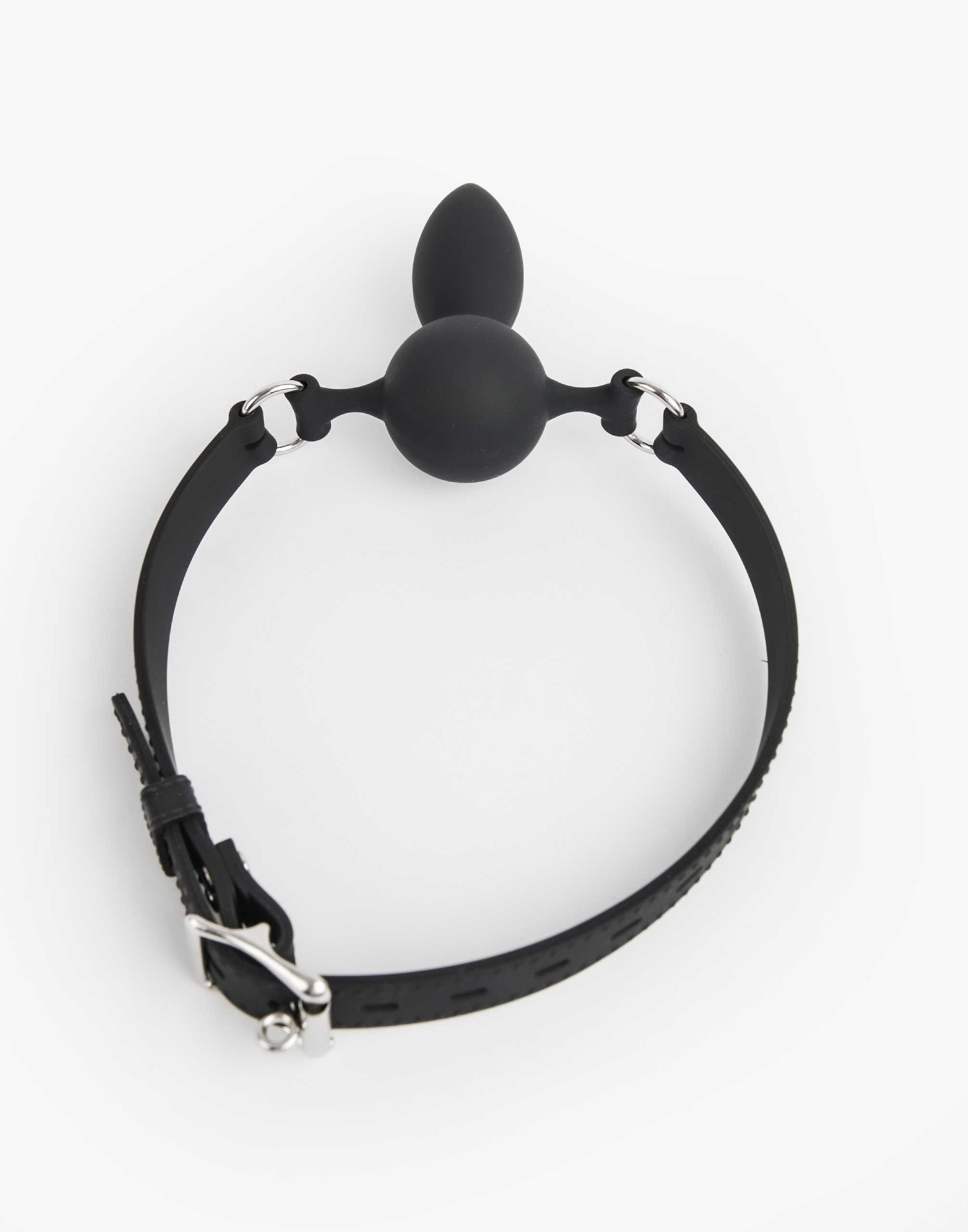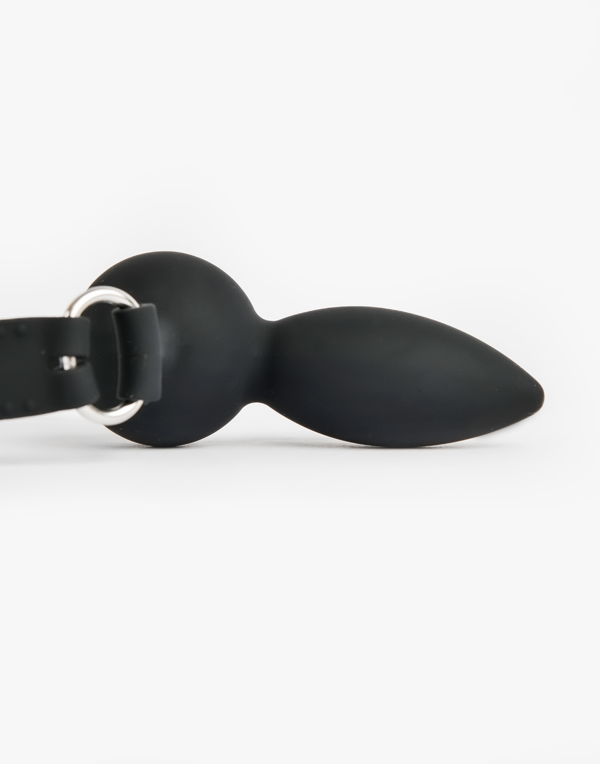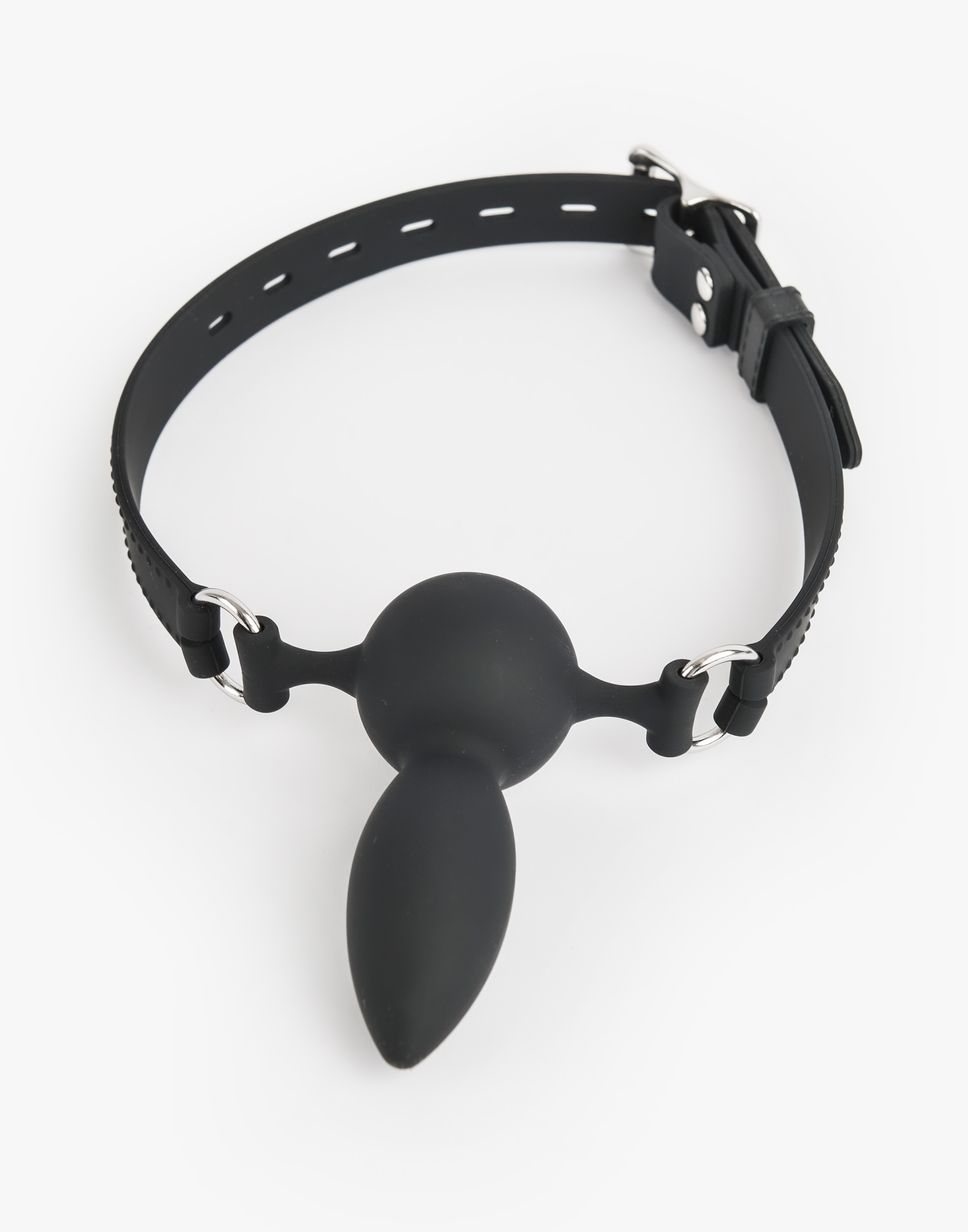 Leder du efter det perfekte redskab til at sætte din højlydte submissive på plads, se savlen løbe ned ad kinderne og hagen og bestemt bede dem om at bruge mundtøjet på andre måder? Så er denne fløjlsglatte og lækre ball gag med plug til at stimulere analt eller vaginalt lige op ad din boldgade. Som Master eller Domina er det naturligvis dig, der bestemmer, hvilken vej dildoen skal vende og hvor den skal hen. I får mange muligheder for kinky leg med den vendbare gag med plug.