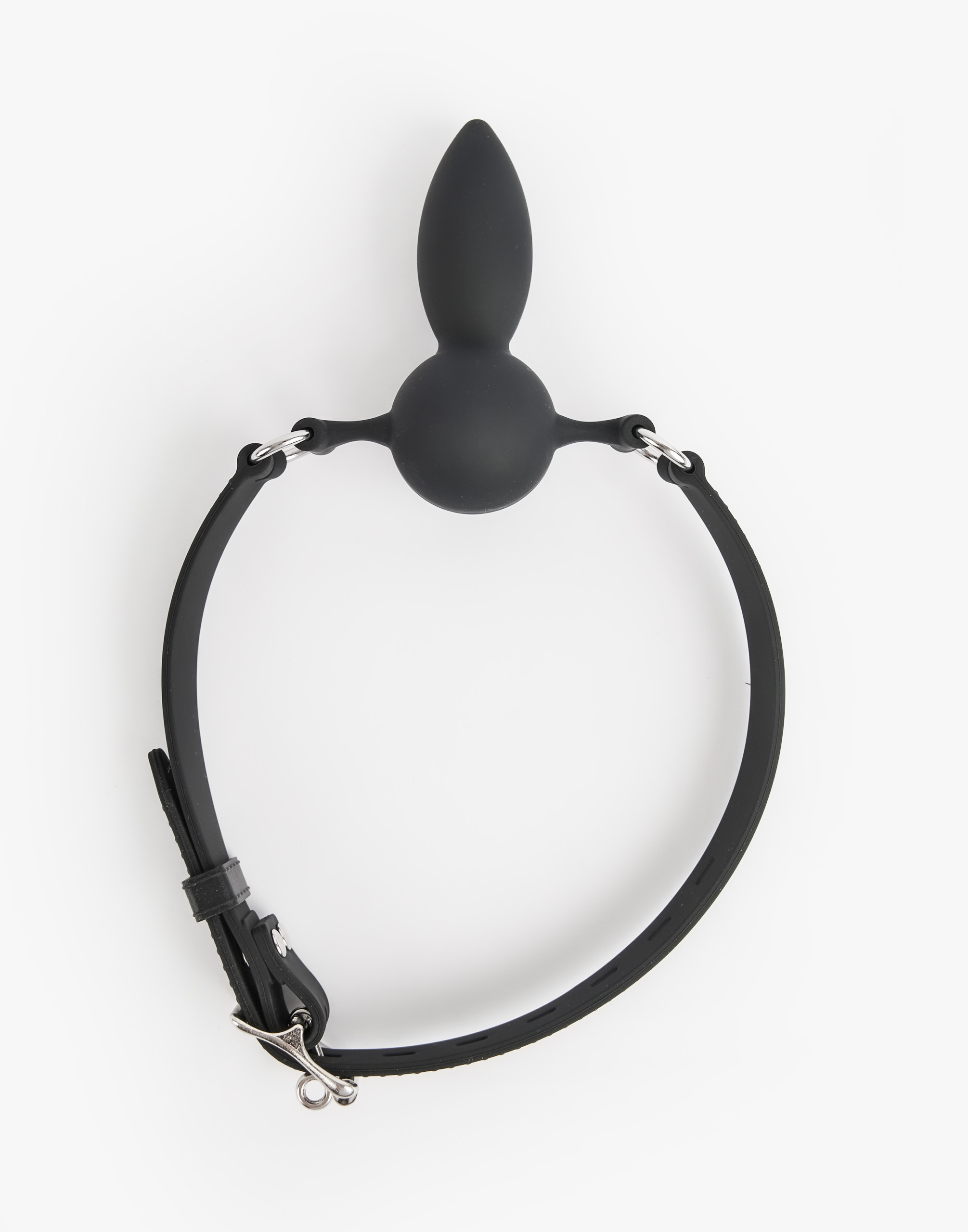 Den lækre silikone gag er justerbar og passer de fleste hoveder. Den kan låses med en hængelås (medfølger ikke) for en ekstra ydmygende oplevelse.
