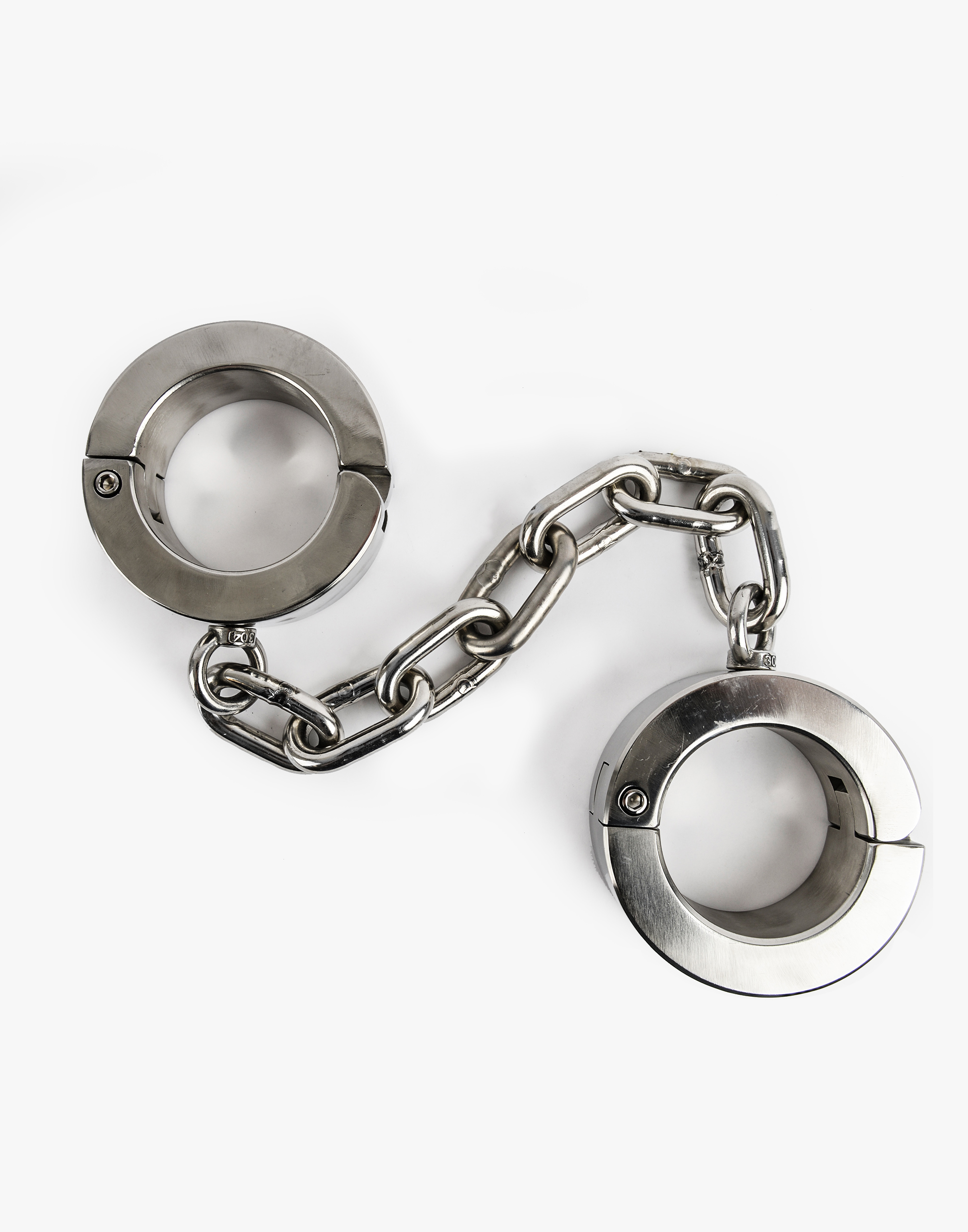 Håndjernene er udformet med et klassisk rundt design med en lang kæde, der rasler ved enhver bevægelse. Din underkastede er i stand til at gå, stå og kravle, men med væsentlige begrænsninger pga. vægten og kædernes længde. Følelsen af det kolde stål imod huden, lyden fra kæden og tyngden af det massive jern vil gøre legen pirrende for både slaven og den dominante.