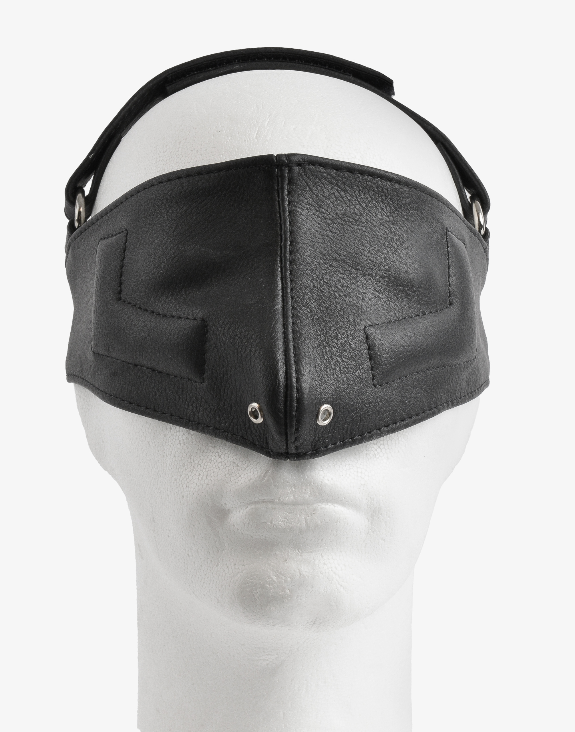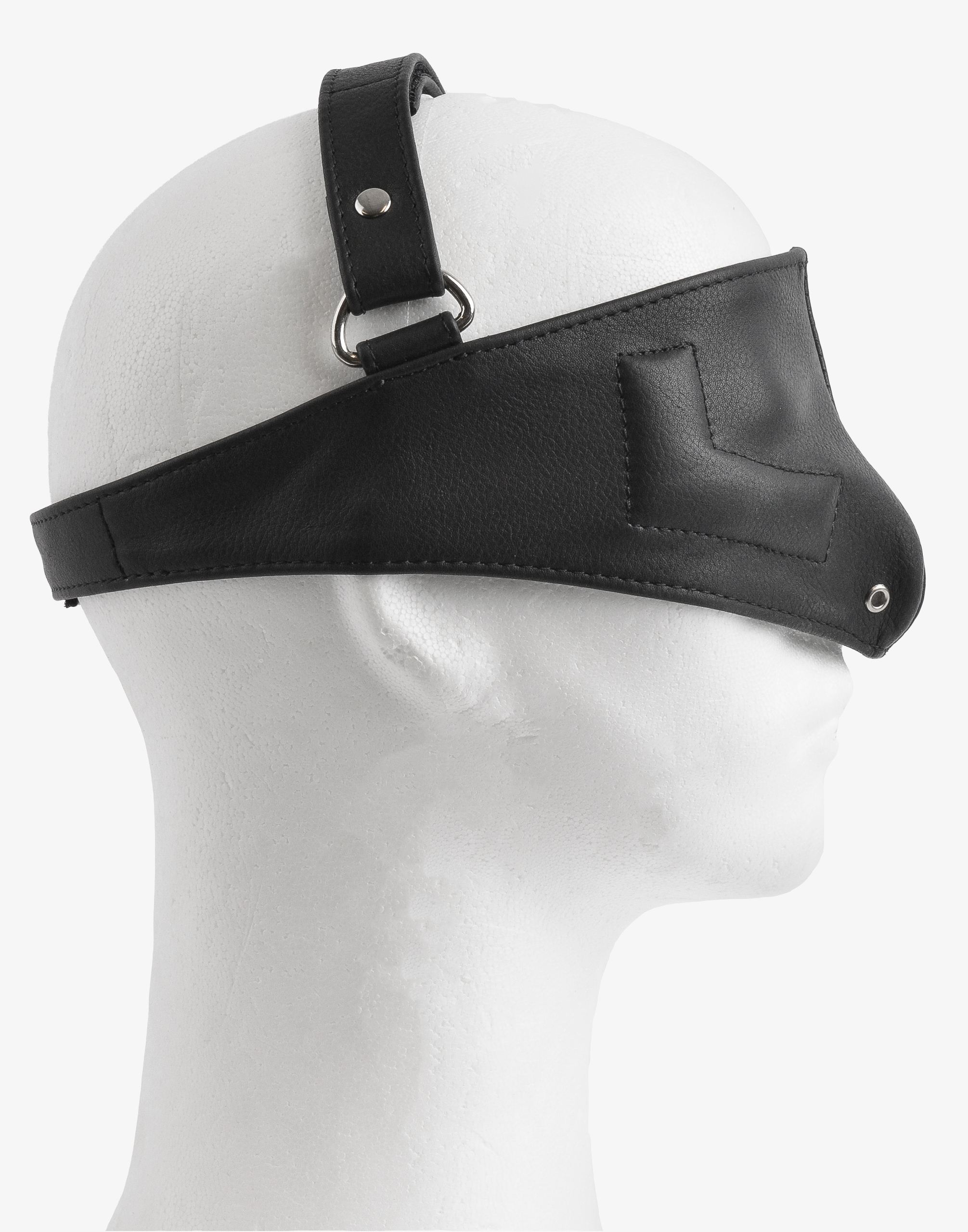 Indersiden af blindfoldet er fremstillet af ruskind, der slutter blødt til rundt om ansigtet. For komfortens skyld er der indsat polstring rundt om kindbenene, så øjnene kan holdes åbne under blindfoldet, hvis dette foretrækkes.