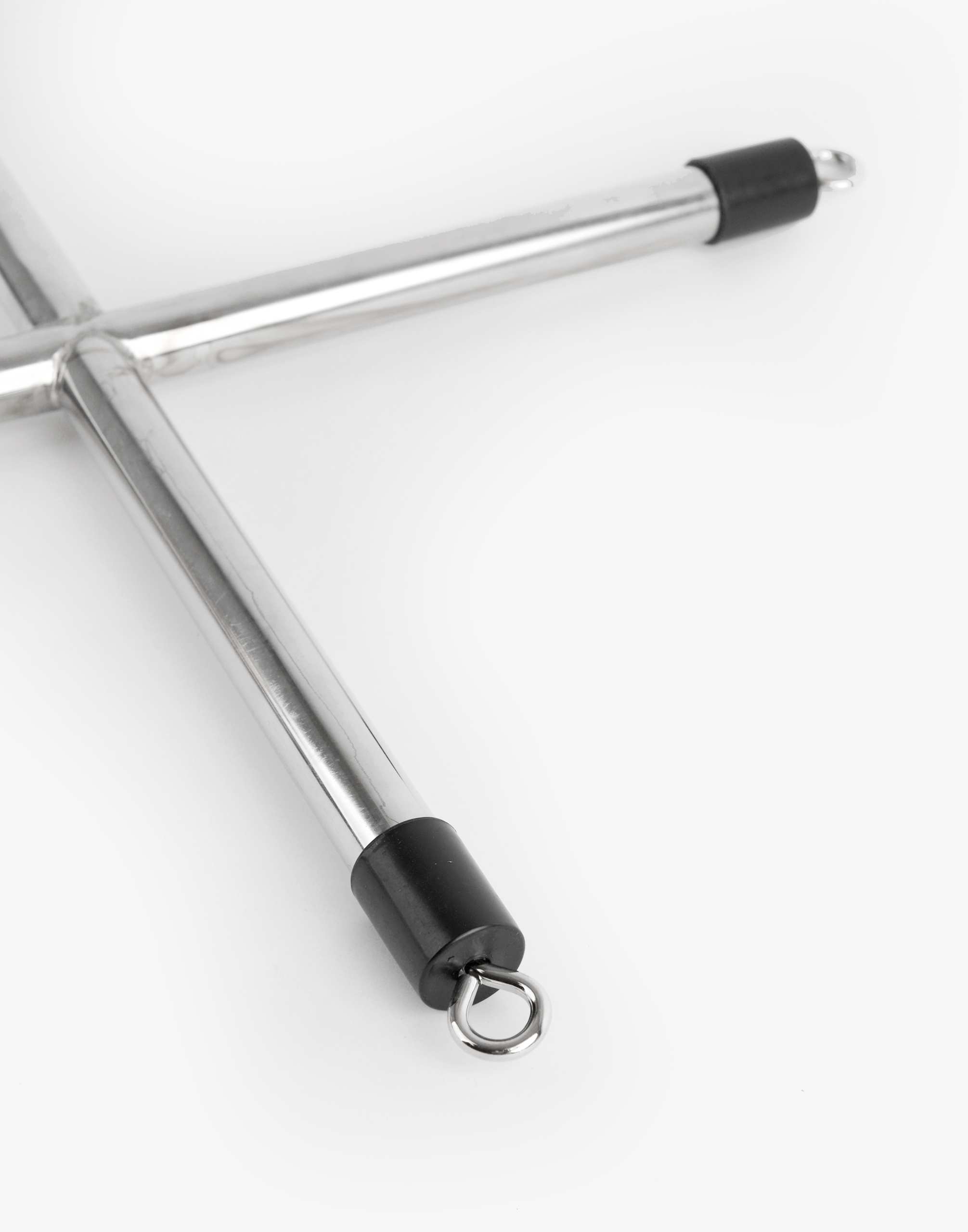 Denne rå spredestand er lavet af ubøjeligt metal, og den er ideel til at fastlåse en person ved hænder og fødder, eventuelt på ryggen, så den pacificerede efterlades fuldstændig ude af stand til at bevæge sig og helt overladt til sin partners nåde. Spredestangen måler 40×40 cm, så uanset om din slave er stor eller lille, vil stangen pacificere fuldstændigt. Manchetterne medfølger ikke.